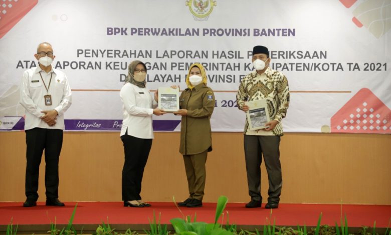 “Berdasarkan pemeriksaan yang dilakukan BPK atas laporan keuangan pemerintah daerah, termasuk implementasi rencana aksi yang sudah dilaksanakan dan telah disampaikan, BPK RI memberikan opini atas LKPD Pemerintah Kabupaten Serang tahun anggaran 2021 dengan opini, wajar tanpa pengecualian,” kata Kepala Perwakilan BPK Provinsi Banten Novie Irawati Herni Purnama saat penyerahan hasil pemeriksaan LKPD kepada DPRD dan Pemkab Serang di kantornya, Senin (23/5/2022).