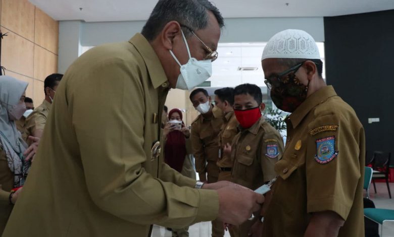 Wali Kota Tangsel, Benyamin Davnie, mengucapkan selamat kepada PNS yang menerima penghargaan ini.