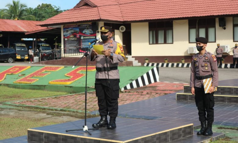 dalam sambutannya Kapolres Landak mengucapkan selamat kepada personil yang mendapat kan reward tersebut.
