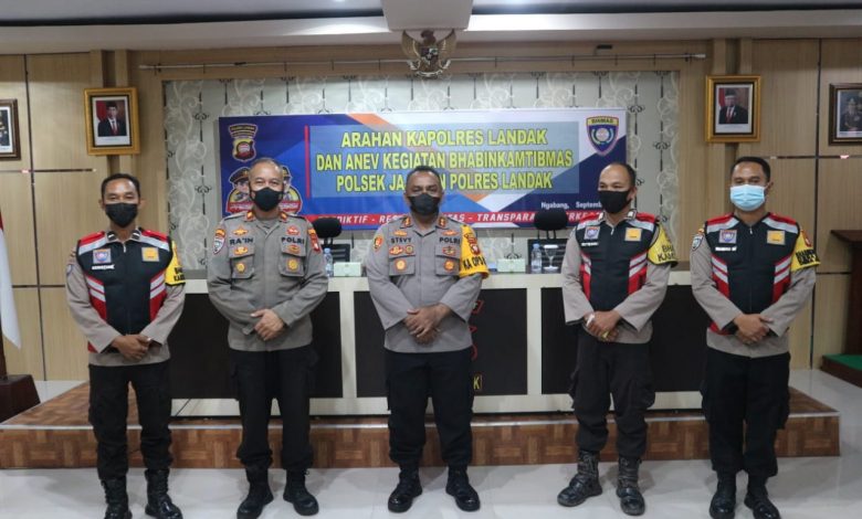 Kapolres Landak menyampaikan bahwa Bhabinkamtibmas merupakan ujung tombak kepolisian dalam rangka penanganan dan pencegahan Pandemi Covid-19 yang saat ini sedang di hadapi.