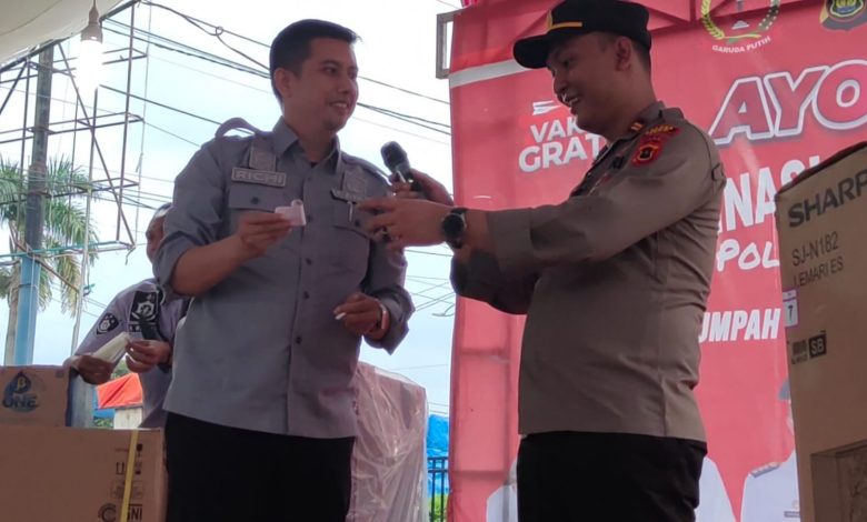 ” Terkait hadiah dan doorprize yang disediakan hari ini, hanya semata dan spontanitas untuk warga yang ikut Vaksinasi dan beruntung melalui undian. ” Terang Kapolsek IPTU Cindo Kottama.