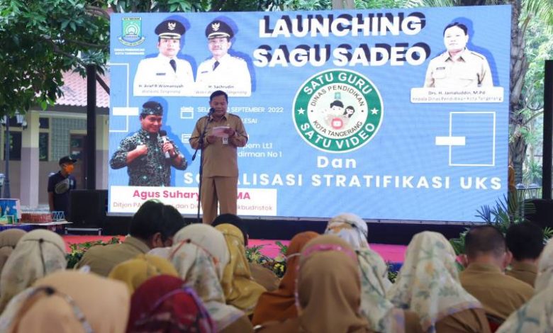 KOTA TANGERANG,- Membangkitkan semangat para murid setelah proses belajar terganggu karena adanya pandemi Covid-19. Pemerintah Kota (Pemkot) Tangerang melalui Dinas Pendidikan Kota Tangerang melakukan launching Satu Guru Satu Video (SAGU SADEO) dan sosialisasi stratifikasi Unit Kesehatan Sekolah (UKS), di Plaza Pusat Pemerintahan Kota Tangerang, pada Selasa (20/9/22).
