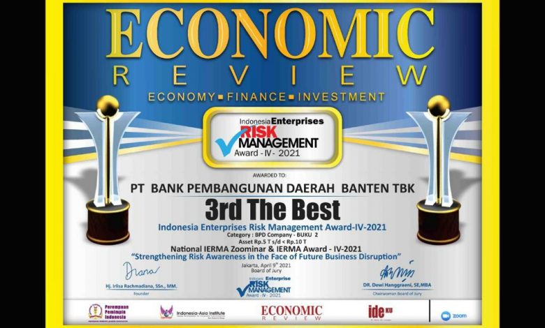 Pada hari yang sama, Bank Banten berhasil pula meraih penghargaan “Indonesia Enterprises Risk management Award-IV Tahun 2021” dari Economic Review untuk kategori Bank Pembangunan Daerah (BPD).