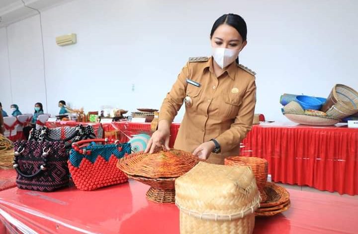 Landak_Kalbar, impresinews.com,- Bupati Landak Karolin Margret Natasa membuka acara display produk handicraf atau kerajinan tangan melalui Tim Penggerak PKK seluruh kecamatan di Kabupaten Landak dalam rangka menggali potensi UP2K melalui IKM dan UMKM di Kabupaten Landak.