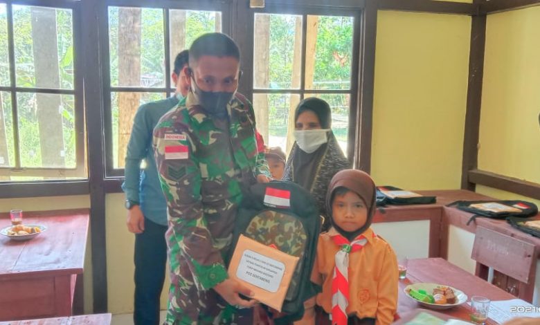 Bengkayang_ Kalbar, impresinews.com,- Dalam rangka meningkatkan motivasi belajar anak-anak sekolah di perbatasan, pos Sentabeng Satgas Pamtas RI-MLY Yonif Mekanis 643/Wns memberikan dan membagikan kelangkapan sekolah berupa tas, buku dan alat tulis kepada siswa SDN 15 Sentabeng. kecamatan Jagoi Babang, kabupaten Bengkayang.