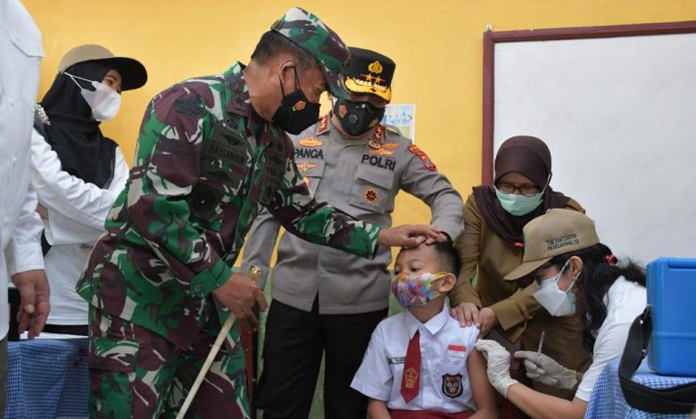 Pangdam menyampaikan untuk anak-anak umur 6 s/d 11 tahun dilaksanakan vaksinasi secara serentak di 41 sekolah, dengan target 51 ribu/ hari selama 14 hari dengan total target 230 ribu anak-anak.
