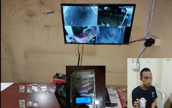 Kemudian pada saat petugas melakukan pengeledahan badan di kontrakan tempat tersangka di tangkap, petugas menemukan beberapa barang bukti berupa. 8 (delapan) paket klip transparan berisi narkotika jenis sabu dengan bruto: 2,27 Gram, 4 (empat) kamera CCTV, 1(satu) buah timbangan digital merek camry warna hitam, uang tunai hasil penjualan Rp.420.000, dan 1(satu) unit Hp Vivo warna hitam.