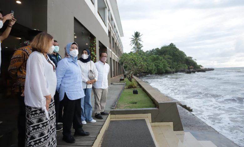 Serang, impresinews.com,-Bupati Serang Ratu Tatu Chasanah turun tangan, menunjungi dan memastikan pariwisata pantai di Kecamatan Anyer dan Cinangka aman bagi wisatawan, Kamis (28/4/2022).