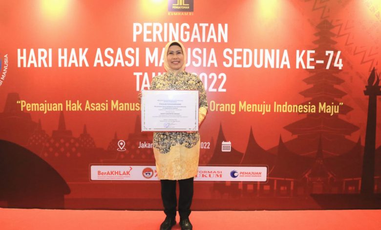 Penghargaan diterima langsung Bupati Serang Ratu Tatu Chasanah di Hotel Sultan, Jakarta, Senin (12/12/2022). Bertepatan dengan Peringatan HAM se-Dunia ke-74 tahun 2022. Tahun lalu dari Kemenkum HAM, Pemkab Serang telah meraih penghargaan Daerah Peduli HAM.