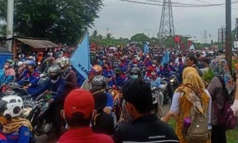 Buruh Demo Tolak UMK 2022, Aktivis : Yuk Bersyukur, Pengangguran Ngantri Ingin Kerja