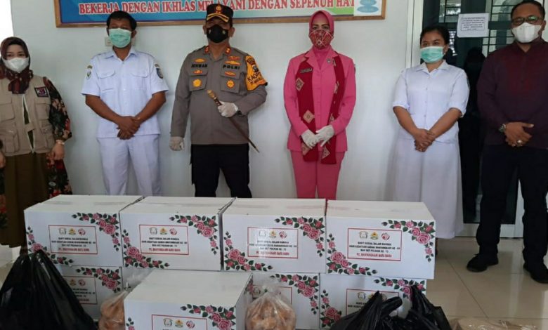 Kapolres Batu Bara AKBP Ikhwan SH.MH bersama Komunitas Sedekah Jumat (KSJ) Batu Bara memberikan 100 nasi kotak, Telur, dan Bubur sekaligus memberikan 15 paket sembako kepada Tenaga Kesehatan (NAKES) dan pasien Covid’19 yang sedang menjalankan perawatan intensif di Rumah Sakit Umum Daerah Batu Bara, dari dapur umum Polres Batu Bara yang bekerja sama dengan KSJ dan Bhayangkari Cabang Batu Bara.