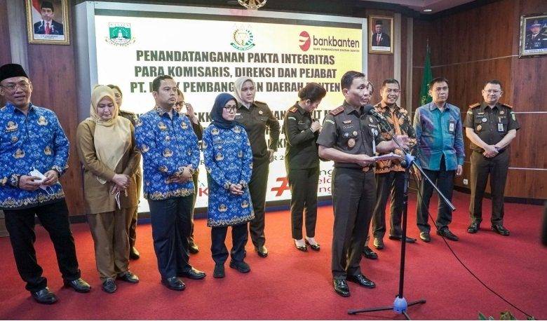 Hal tersebut disampaikan Direktur Utama Bank Banten, Dr. Agus Syabarrudin pada kegiatan Penandatanganan Pakta Integritas Manajemen Bank Banten dan Penyerahan Surat Kuasa Khusus (SKK) Peyelesaian Kredit Bermasalah di seluruh Kantor Cabang Bank Banten kepada Kejaksaan Negeri di wilayah Provinsi Banten.