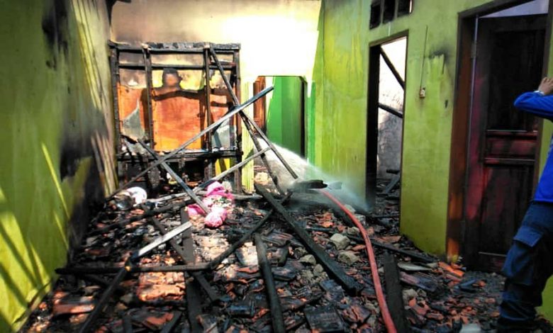 Madharis saksi dan salahsatu saudaranya menjelaskan,Pada saat itu dirinya lagi ada di warung tetangga dan melihat ada asap dari dalam rumah.