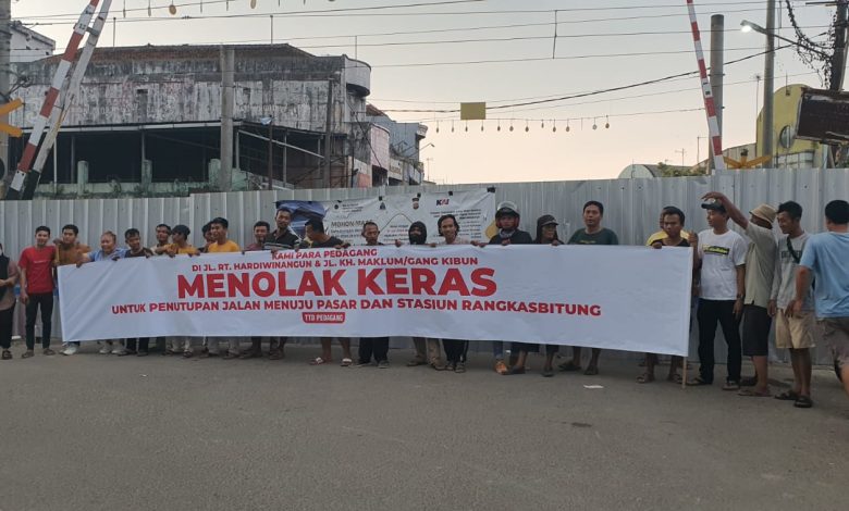 Hal itu katanya,dengan penutupan pintu kereta api yang merupakan aksesmenuju ke pasar Rangkasbitung, para pengguna jalan dan para pedagang melakukan aksi penolakan dengan membentangkan spanduk yang dibubuhi tanda tangan.