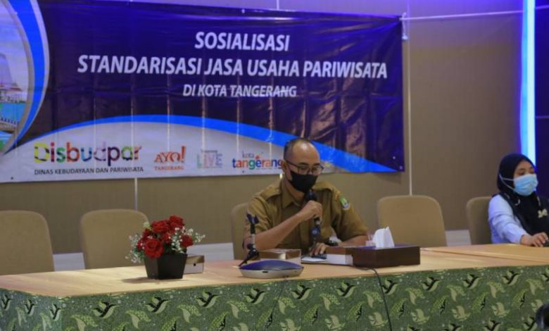 Kota Tangerang, impresinews.com,- Setelah dua tahun pariwisata melandai akibat pandemi Covid-19. Pemerintah Kota (Pemkot) Tangerang melalui Dinas Kebudayaan Pariwisata dan Pertamanan (Disbudparman) gelar Sosialisasi Standarisasi Jasa Usaha Pariwisata, di Aula Kecamatan Tangerang, Selasa (28/6/22).