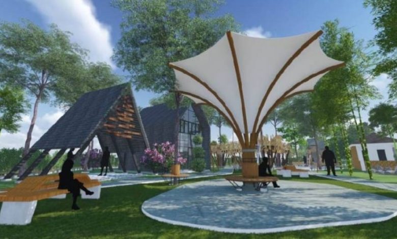 “Desain sudah jadi, rencananya kita tidak menggunakan bahan bambu lagi karena sering rusak, rumah bambu tersebut kita rubah bentuknya menjadi 2 lantai, lantai 1 sebagai pusat informasi pariwisata dan lantai 2 sebagai kantor pengawas taman sekaligus pusat pengendalian CCTV taman tematik, selain itu ada beberapa penambahan konsep seperti piknik area dengan rumput sintetis dan beanbag,” paparnya.