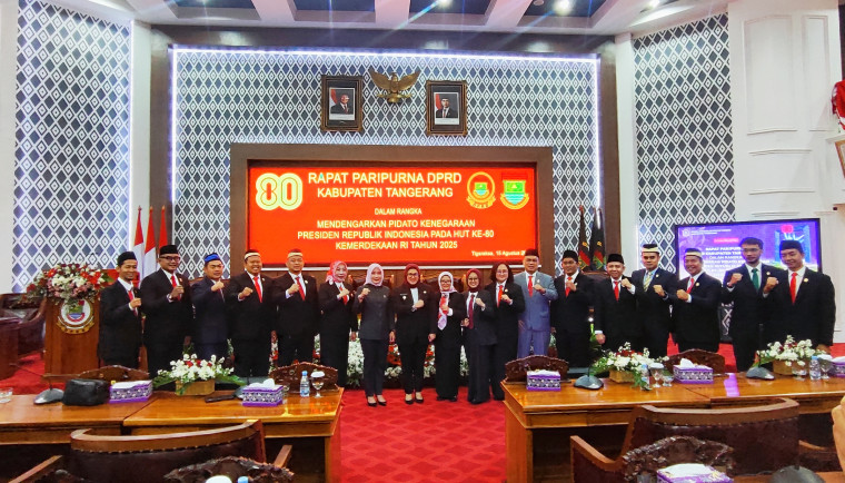 TANGERANG,- Dewan Perwakilan Rakyat Daerah (DPRD) Kabupaten Tangerang menggelar Rapat Paripurna Istimewa dalam rangka mendengarkan Pidato Kenegaraan Presiden Republik Indonesia pada Hari Ulang Tahun (HUT) ke-80 Kemerdekaan Republik Indonesia di Ruang Rapat Paripurna DPRD Kabupaten Tangerang pada Jumat, (15/08).