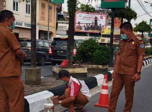 Seperti yang terlihat pada hari ini Selasa 5 Oktober 2021. Camat Turing melakukan pengecatan dengan warna hitam putih di pembatas jalan Sudirman dan Imam Bonjol.
