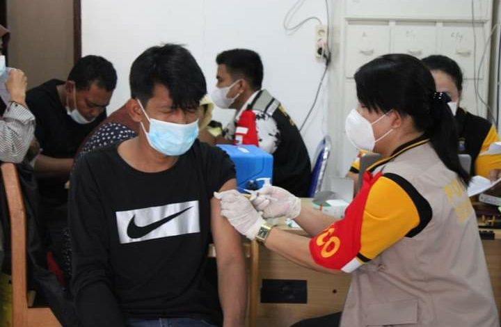 Kegiatan Vaksinasi yang dilaksanakan di Mapolres Labuhanbatu diikuti 10 orang wartawan dan 60 orang dari masyarakat.