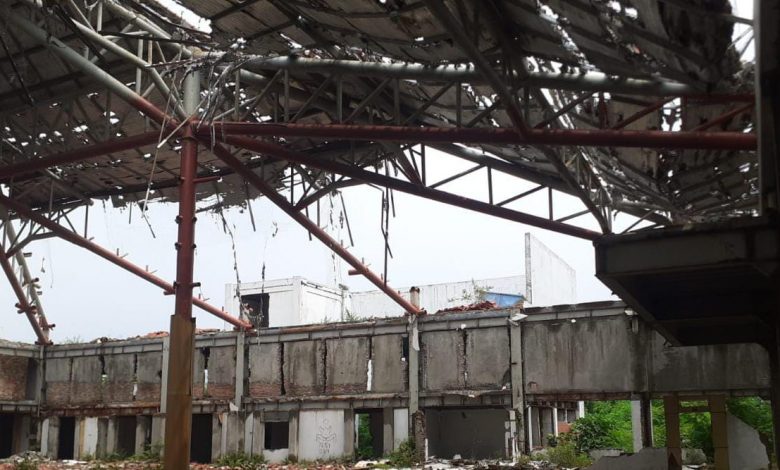 Tak terawat ditinggalkan begitu saja pagarnya banyak yang hilang dibongkar dan begitu juga kusen pintu besi-besi besar besi-besi penyangga udah banyak terpotong hilang lenyap oleh penjarah besi besi tua dan Material pantauan Wartawan, Selasa, (21/9/22)