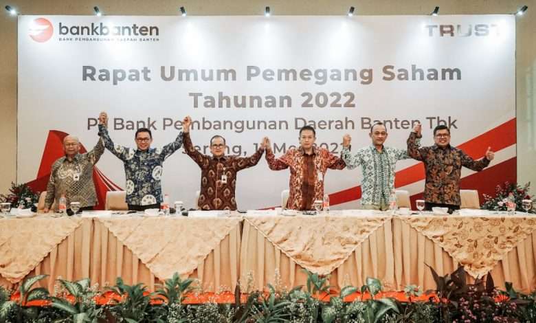 Serang – Rapat Umum Pemegang Saham Tahunan (RUPST) PT Bank Pembangunan Daerah Banten Tbk (Bank Banten/BEKS) memberikan persetujuan atas laporan pertanggungjawaban manajemen untuk tahun buku 2021, di Serang, Rabu (11/05).