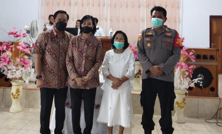 Ibadah yang dimulai pukul 14.00 wita itu dipimpin oleh Ketua Majelis Wilayah Barat Gembala John Landeng dan dihadiri oleh Kapolres Bolmong AKBP Dr. Nova Irone Surentu, SH, MH.