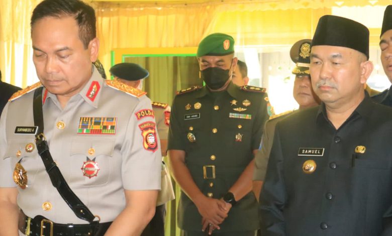 Dandim 1201/Mph Letkol Inf Dwi Agung Prihanto, S.Sos., M.Tr(Han)., menghadiri langsung upacara tersebut yang dipimpin oleh Kapolda Kalbar Irjen Pol. Drs. Suryanbodo Asmoro, M. Mt.