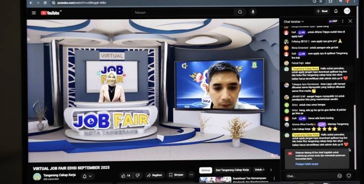 “Kami mengucapkan terima kasih atas antusias para pencari kerja yang tadi telah meramaikan Job Fair Virtual lewat kanal Youtube Disnaker Kota Tangerang. Apalagi, Job Fair Virtual bulan ini menyediakan ribuan lowongan pekerjaan dengan 63 formasi jabatan mulai dari lulusan SLTA sampai S1 semuanya disediakan,” ujar Ujang, Rabu (24/9/25)