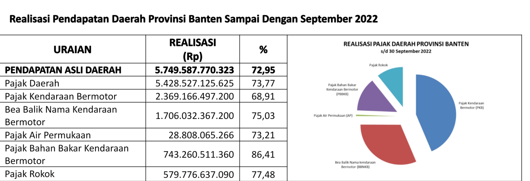 Realisasi Pendapatan Daerah Provinsi Banten Sampai Dengan September 2022