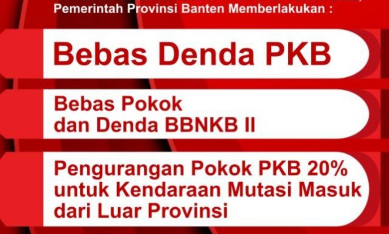 KOTA SERANG,- Pemerintah Provinsi Banten telah meluncurkan program penghapusan denda Pajak Kendaraan Bermotor (PKB), bebas pokok dan denda Bea Balik Nama Kendaraan Bermotor (BBNKB) penyerahan kedua, dan pengurangan pokok PKB 20% untuk kendaraan mutasi masuk dari luar Provinsi.