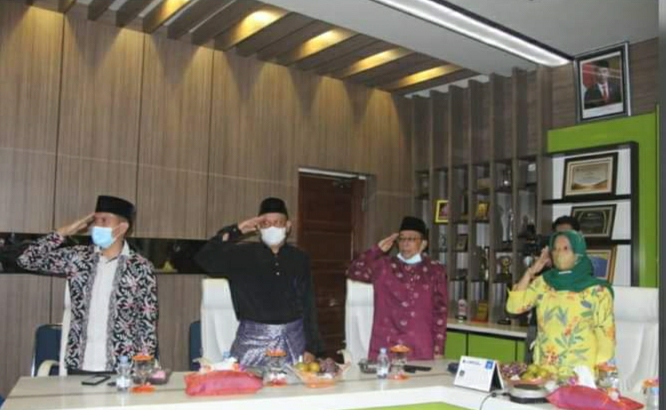 BINJAI, impresinews.com,- Wali Kota Binjai yang diwakilkan Asisten I Bidang pemerintahan dan kesejahteraan rakyat Ernawati SH mengikuti upacara peringatan Hari Lahir Pancasila dengan inspektur upacara Presiden RI Joko Widodo secara virtual di Binjai Command Center Balai Kota Binjai, Selasa (1/6).