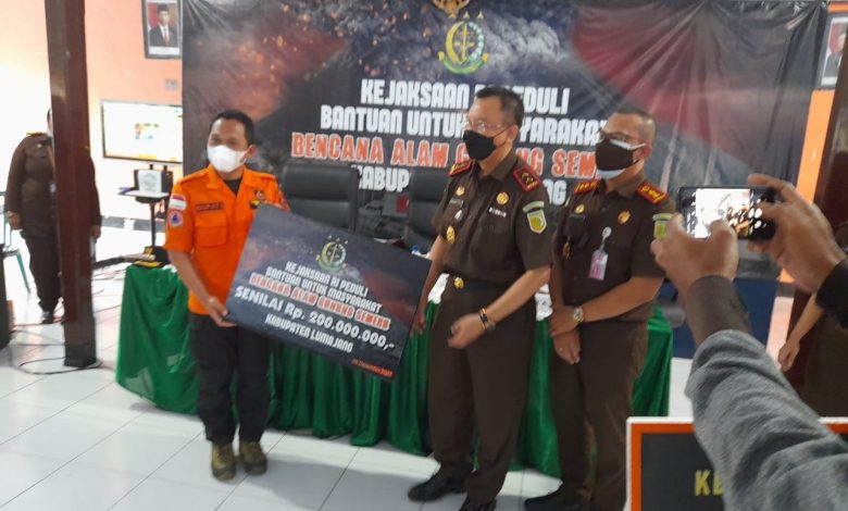 Penyerahan tersebut dilakukan setelah penutupan Rapat Kerja Kejaksaan Republik Indonesia Tahun 2021 yang diikuti oleh seluruh peserta Rapat Kerja dan Bupati Kabupaten Lumajang Thoriqul Haq, MM dari lokasi bencana.Juma’t, (10/12/2021)