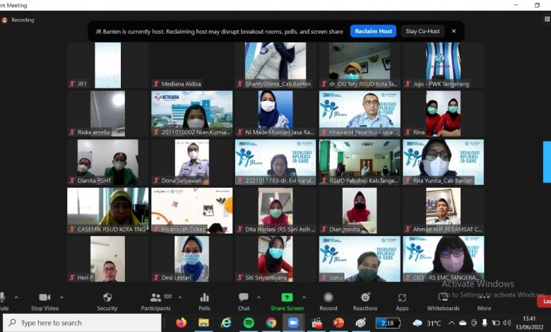 Tangerang – Jasa Raharja Perwakilan Tangerang Cabang Banten melaksanakan sosialisasi aplikasi JR-Care melalui Zoom Meeting kepada 64 Rumah Sakit di Wilayah Tangerang.