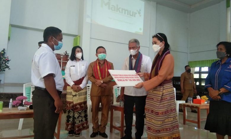 Namun sebelum memberikan sambutan, Julie Laiskodat terlebih dahulu menyerahkan secara simbolis program stimulus produk pupuk non subsidi kepada Koperasi Pemuda Milenial Tuatuka senilai RP. 100.000.000.