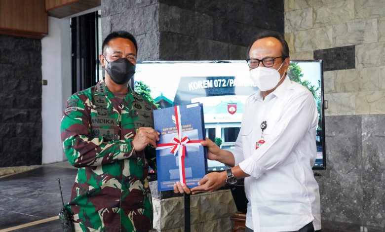 Jakarta, impresinews.com, – Kepala Staf TNI AD (Kasad) Jenderal TNI Andika Perkasa menerima penyerahan sertifikat tanah dari Kakanwil BPN Jawa Tengah dan Kakanwil BPN DIY, di Markas Korem 072/ Pamungkas Yogyakarta, Sabtu (04/09/2021).