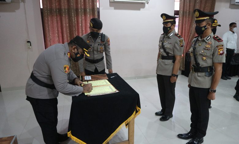 Landak_Kalbar, impresinews.com,- Kapolres Landak AKBP Stevy Frits Pattiasina, memimpin langsung serah terima jabatan yang biasa di sebut mutasi di ruang Balai Kemitraan Polisi Masyarakat (BKPM) Polres Landak. Jum’at (17/9/2021)