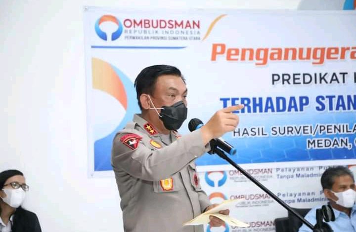 Kepatuhan Pelayanan Publik, Kapolda Sumut Terima Penghargaan dari Ombudsman