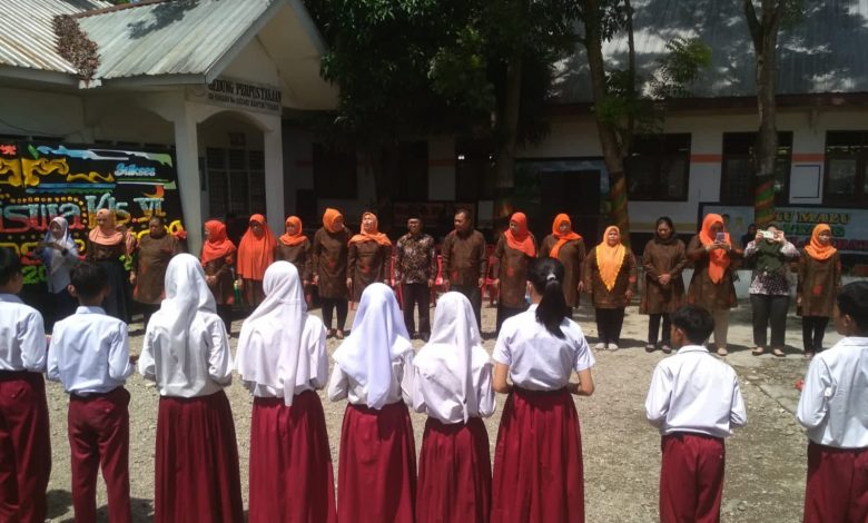 Acara pelepasan siswa siswi kelas VI SDN 09 dengan guru pendidik digelar di pelataran sekolah yang berlokasi di Jalan Sanusi, Kelurahan Cendana, Kecamatan Rantau Utara.