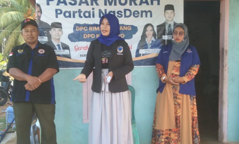 Ketua DPC Nasdem Rimbo Bujang dan Garnita Malahayati Partai Nasdem Gelar Pasar Murah Di Desa Rimbo Mulyo