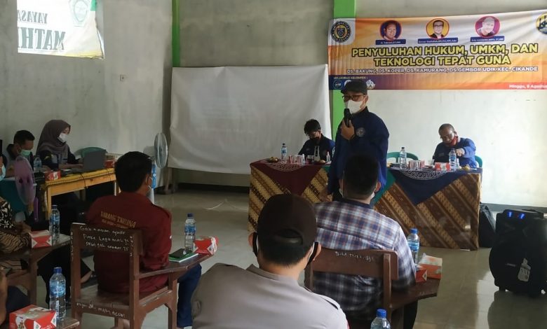 Kabupaten Serang, impresinews.com,- Kuliah Kerja Mahasiswa (KKM) 2021 Universitas Bina Bangsa (Uniba) yang berada di Desa Bakung, Desa Koper, Desa Gembor Udik, Desa Kamurang yang masuk wilayah Kecamatan Cikande, mengadakan seminar tentang Hukum, UMKM, dan Teknologi Tepat Guna.