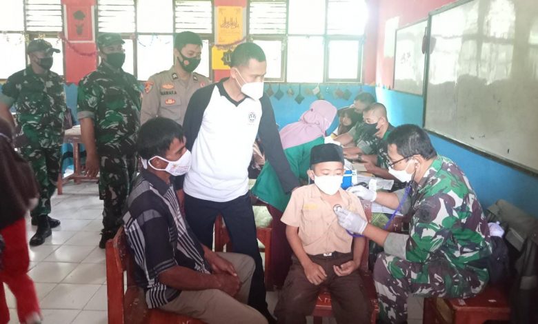 Lebak .Impresinews.com,- Komando Rayon Militer (Koramil) 0303/Maja bersama tim kesehatan laksanakan vaksinasi pada siswa Sekolah Dasar Negri 2 Mekarsari berjalan dengan lancar di Gedung Sekolah SD.N.2, Mekarsari Desa Mekarsari Kecamatan Maja Kabupaten Lebak Sabtu (05/03/2022)