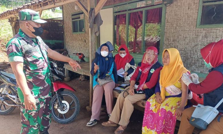 Selain di kantor, Danramil juga memerintahkan anggota laksanakan vaksinasi secara dor tu door di beberapa titik Desa, bekerjasama Muspika di dua Kecamatan guna memudahkan pada masyarakat dalam menerima penyaluran vaksinasi.