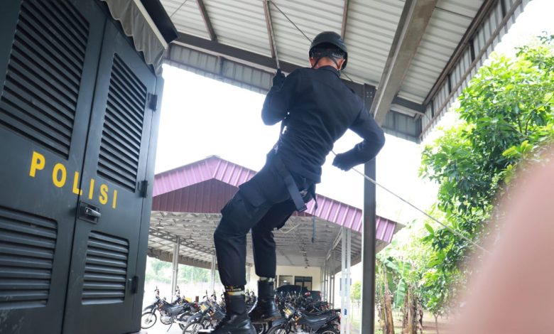 Gunung Putri (Bogor), impresinews.com, – Personel Batalyon B Resimen 1 Pasukan Pelopor melaksanakan latihan Vertical Rescue, bertempat di Kompi Markas Batalyon B, Rabu (29/09/2021).