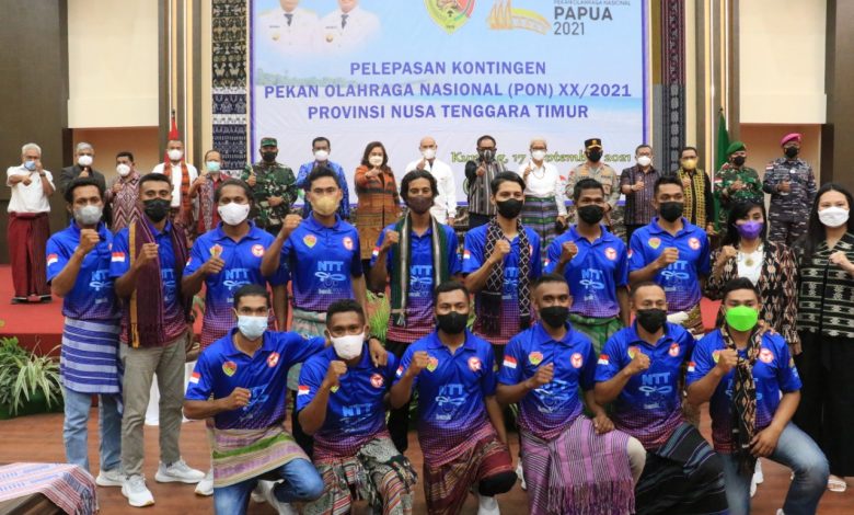 Pelepasan kontingen Atlet NTT yang akan berangkat ke PON Papua tersebut dilaksanakan di Aula El Tari Kantor Gubernur NTT, pada Jumat (17/9/2021). Hadir dalam acara itu Ketua DPRD Provinsi NTT, Emilia Nomleni, Unsur Forkopimda Provinsi NTT, para Atlet, Pelatih, Pengurus KONI NTT, Pembina KONI NTT, para pimpinan Perangkat Daerah serta para Awak Media Jum’at (17/09/2021)