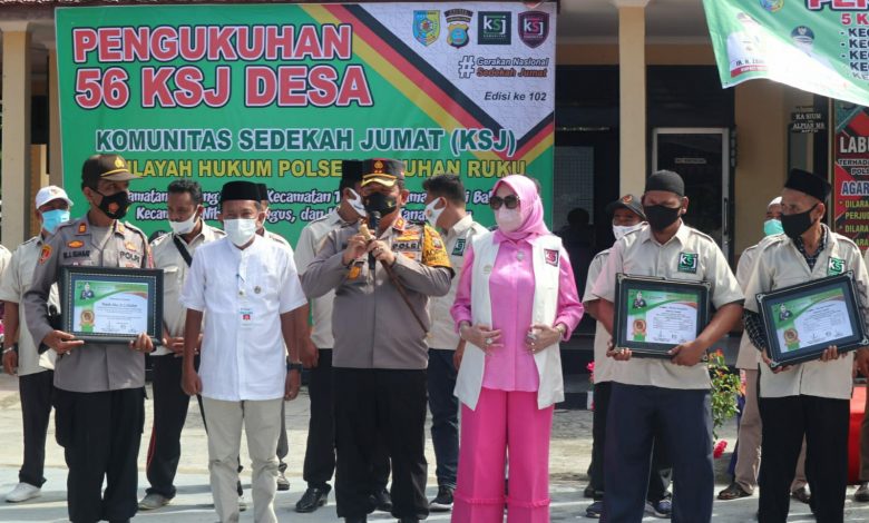 Batu Bara, impresinews.com,-Kapolres Batu Bara AKBP Ikhwan SH.MH pendiri sekaligus pembina utama Komunitas Sedekah Jum’at (KSJ) kembali kukuhkan sebanyak 56 Desa di 5 Kecamatan pada Jum’at,(23/7/21). Di halaman Mapolsek Labuhan Ruku, Jalan Imam Bonjol, Kecamatan Talawi, Kabupaten Batu Bara, Sumatera Utara.