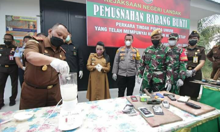 Kepala Kejaksaan Negeri Kabupaten Landak Sukamto menjelaskan, bahwa pemusnahan barang bukti perkara pidana yang telah mempunyai kekuatan hukum tetap ini, merupakan barang bukti tindak pidana dalam kurun waktu satu tahun.