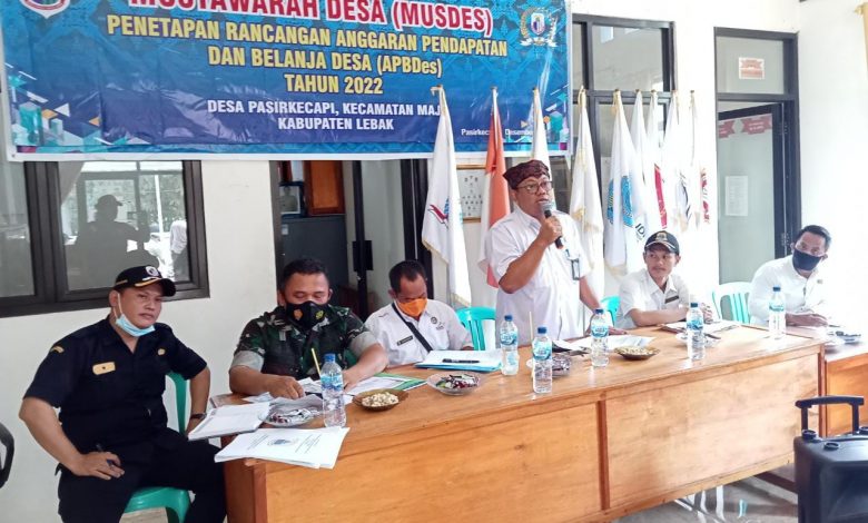Lebak. Impresinews.com. Musyawarah Desa (Musdes) Anggaran Pendapatan dan Belanja Desa (APBDes) tahun 2022 di Desa Pasir Kacapi Kecamatan Maja Kabupaten Lebak Lebih Mengedepankan Aspirasi Masyarakat berskala Prioritas, Hal tersebut di ungkapkan Badru Sekertaris Desa saat menyampaikan sambutannya Rabu (19/01/2022)
