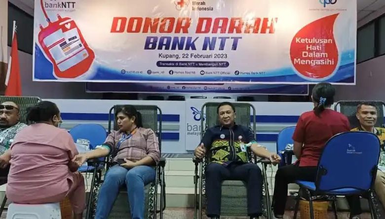 KUPANG,-Aksi donor darah yang digelar oleh keluarga besar PT Bank Pembangunan Daerah Nusa Tenggara Timur atau Bank NTT kerjasama berbagai lembaga, Rabu (22/2/2023) pagi di lantai lima kantor pusat, berhasil mengumpulkan setidaknya 100 kantong darah.