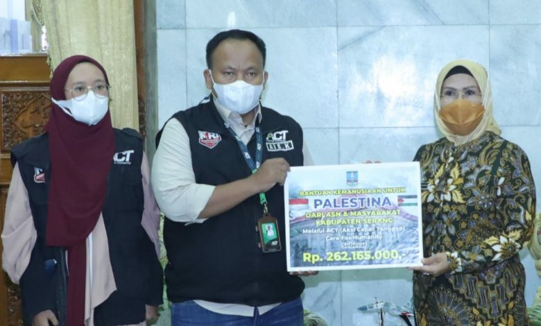 Donasi kemanusiaan tersebut dihimpun dari aparatur sipil negara (ASN) Pemkab Serang dan masyarakat Kabupaten Serang. “Respons dari keluarga besar ASN dan masyarakat Kabupaten Serang luar biasa untuk saudara kita di Palestina,” kata Bupati Serang Ratu Tatu Chasanah di sela-sela penyerahan donasi kepada ACT di Pendopo Bupati Serang, Senin (7/6/2021).