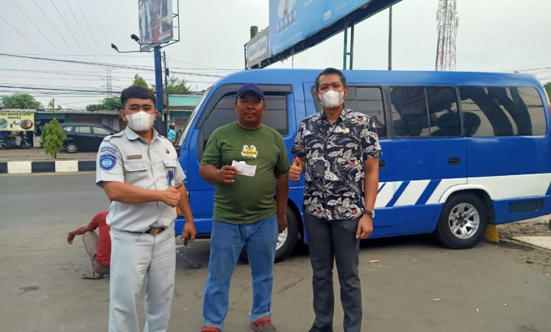 Serang – Penanggung Jawab Jasa Raharja Samsat Cikokol Ahmad Arif Budiman bersama Penanggung Jawab Samsat Kota Serang Rangga Figur Rachman berkolaborasi melaksanakan kegiatan CRM & Door To Door di Halte keberangkatan angkutan umum Penancangan Kota Serang pada Selasa pagi 12 Juli 2022.